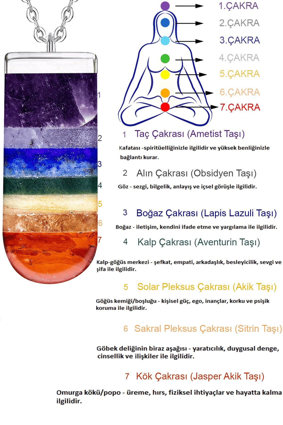 Sertifikalı Doğal Ametist Obsidyen Lapis Lazuli Aventurin Akik Sitrin Jasper Taşı 7 Çakra Kolye Doğal 7 Farklı Renk 50 cm