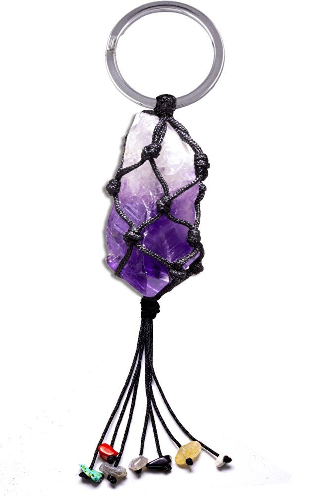 Sertifikalı Doğal Ametist Taşı Doğal Taş Anahtarlık