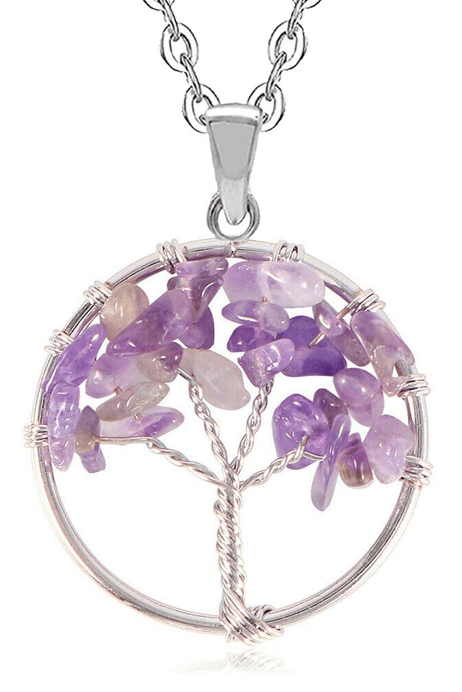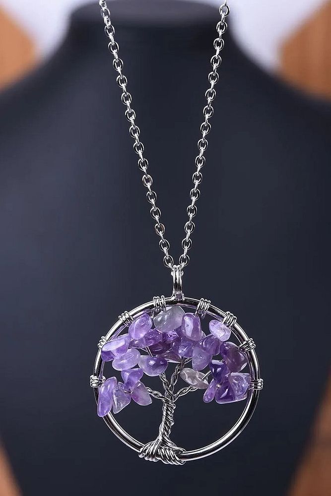 Sertifikalı Doğal Ametist Taşı Hayat Ağacı Kolye
