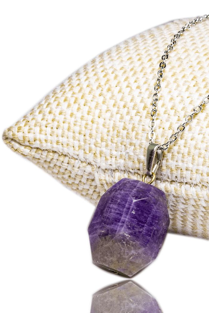 Sertifikalı Doğal Ametist Taşı Kolye - Elmas Kesim