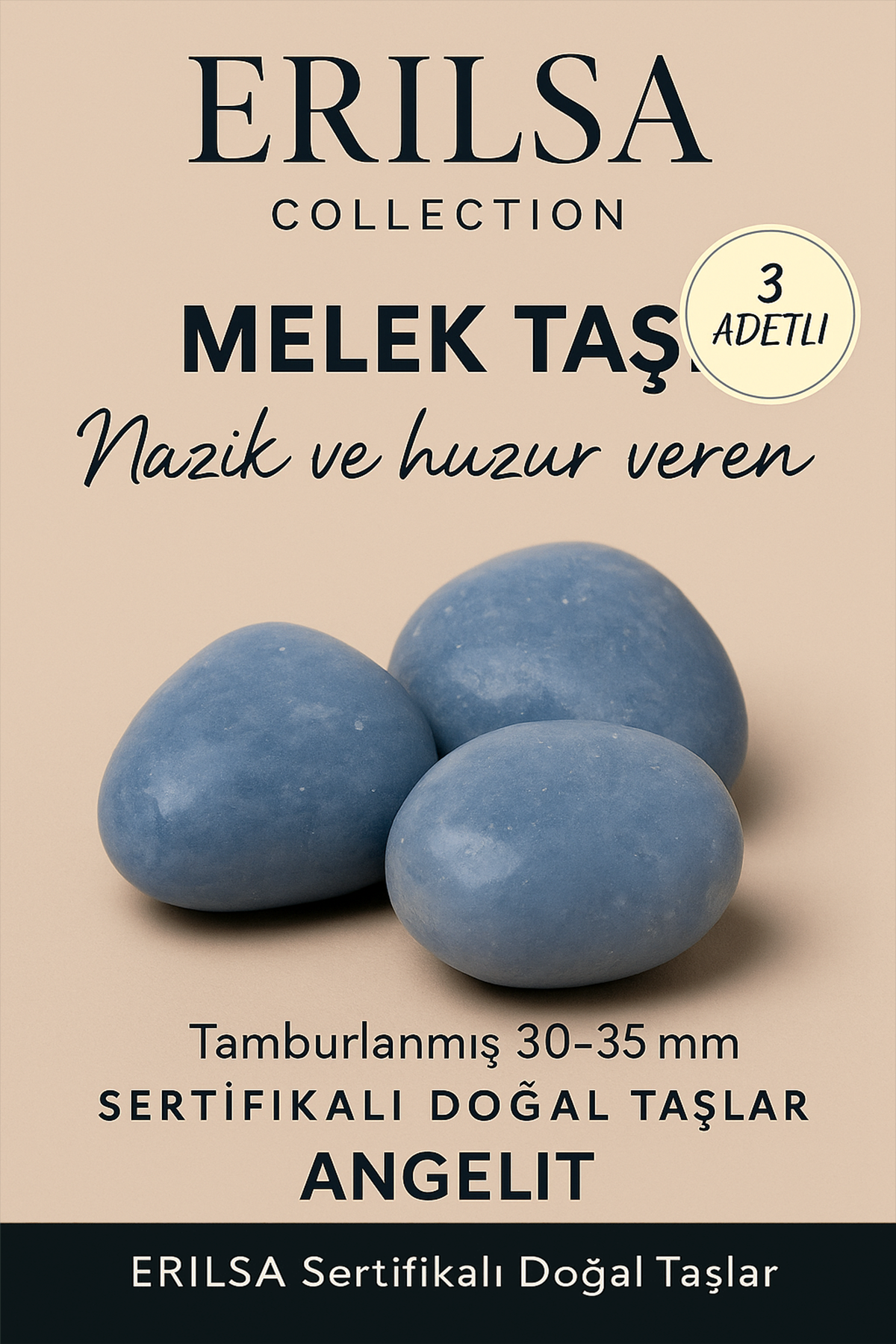 ERILSA Collection tarafından sunulan Angelit (Melek Taşı), huzur ve yumuşak enerjisiyle bilinir. Nazik titreşimleri sayesinde iletişimi kolaylaştırır, ruhsal bağlantıyı güçlendirir ve sakinlik verir. Özellikle meditasyon ve enerji çalışmalarında sıkça tercih edilen doğal taşlardan biridir.