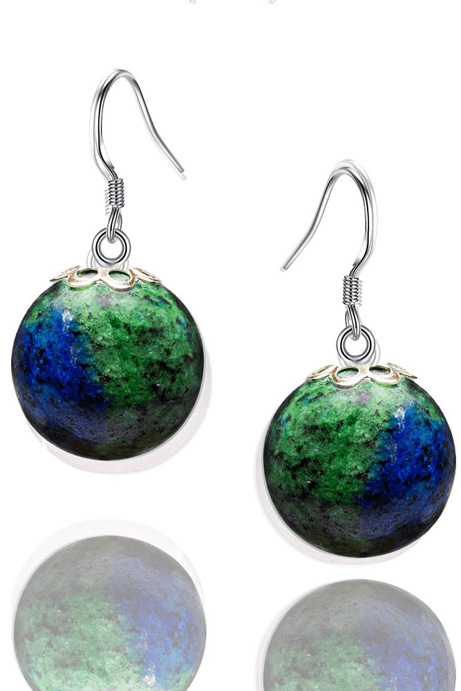 Sertifikalı Doğal Azurit Taşı Gümüş Küpe