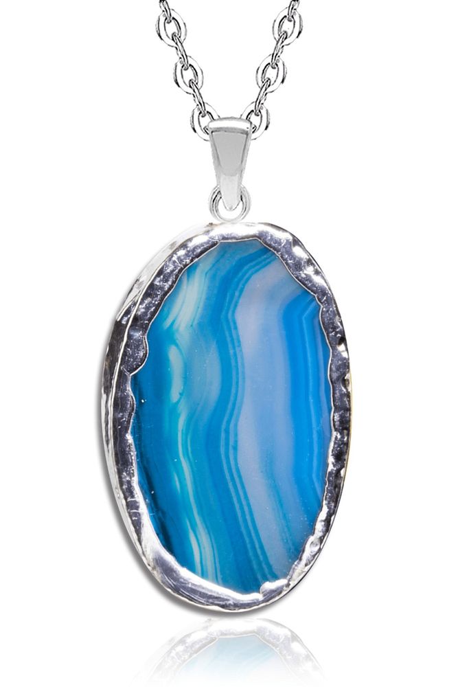 Sertifikalı Doğal Desenli Mavi Akik Taşı Kolye