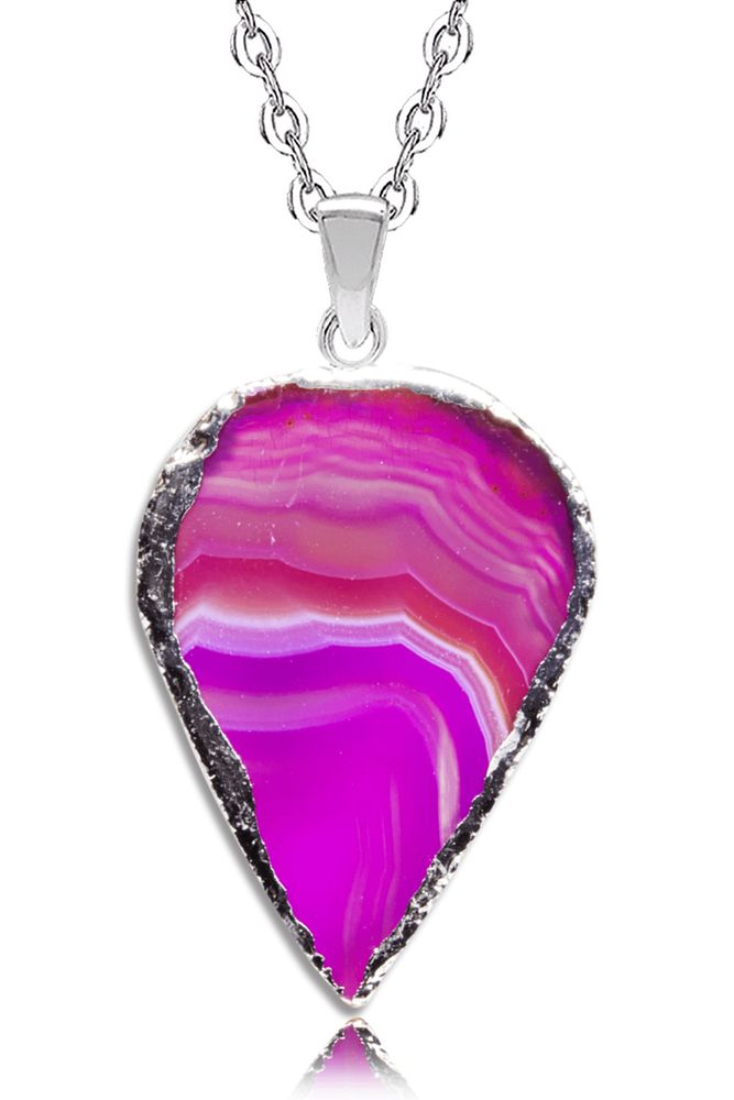 Sertifikalı Doğal Desenli Pembe Akik Taşı Kolye