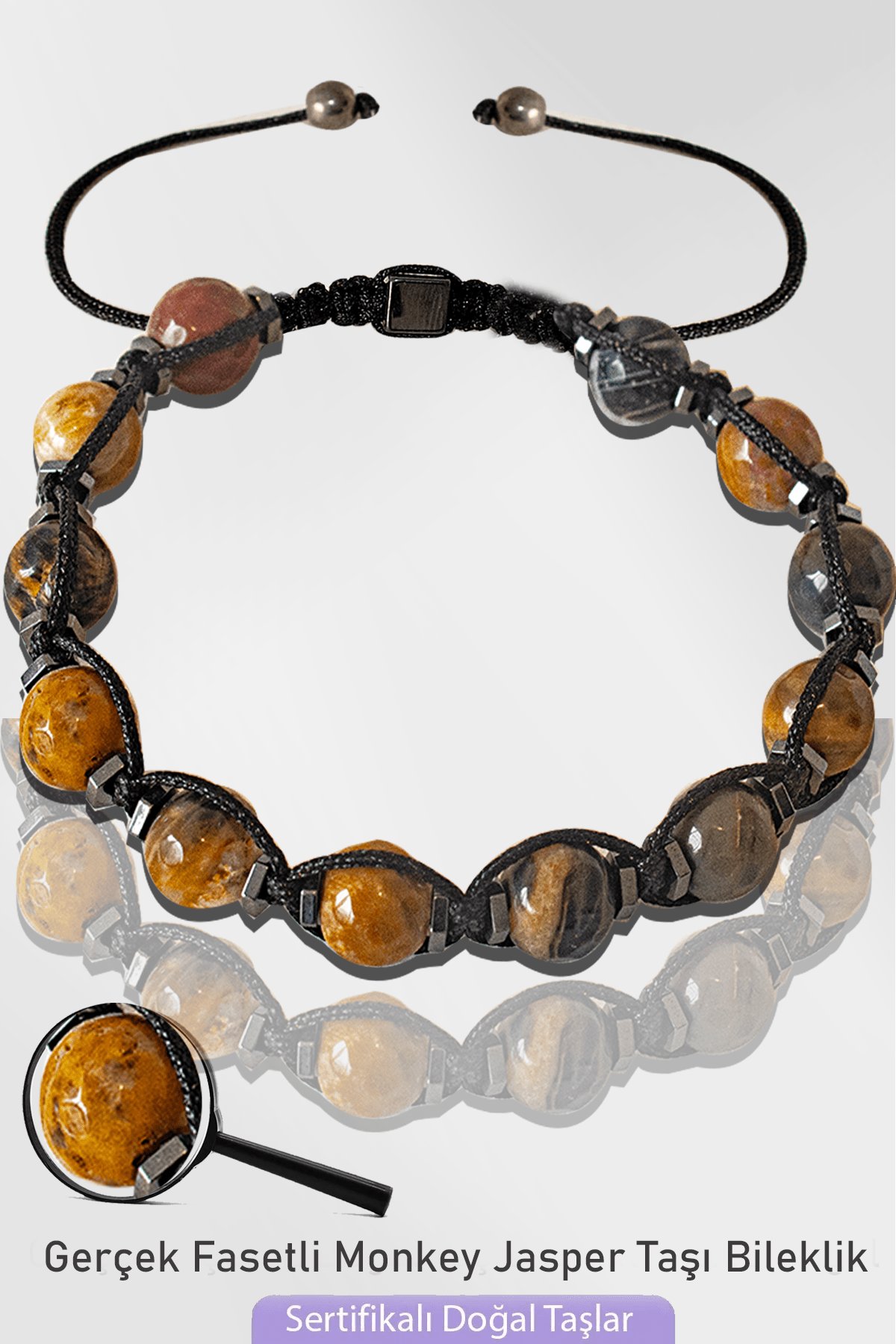 Sertifikalı Doğal Fasetli Monkey Jasper Taşı Bileklik - Ayarlamalı