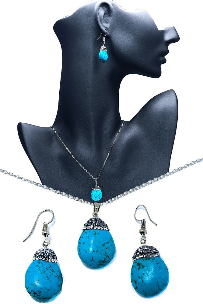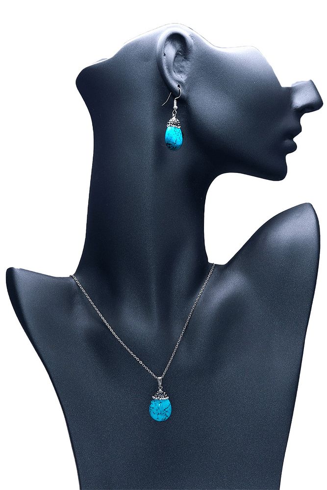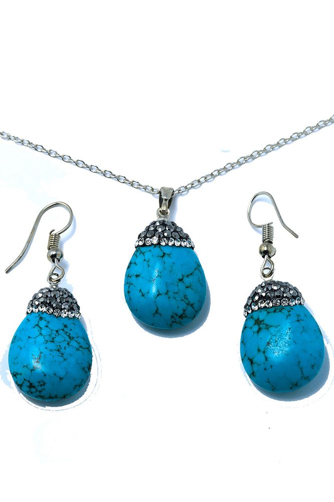 Sertifikalı Doğal Firuze (TURKUAZ) Taşı Kolye Ve Küpe Set