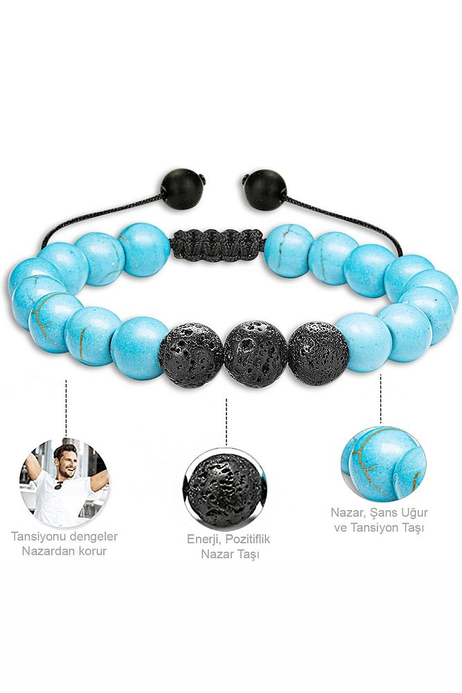 Turkuaz Firuze ve Volkanik Lav Taşı Doğal Taş Bileklik, modelimiz makrome el işciliği sanatı olarak sizlere özel olarak hazırlanmıştır. 7 farklı doğal taşlardan hazırlanmış ürünümüz şıklığınıza şıklık katacak şekilde tasarlandı. Ücretsiz Kargo ve Taksit İmkanlarını sakın kaçırmayın. Sinir ve stresi alacak negatif enerjilerinizi ortadan kaldırır. Sizleri gevşetir. Ürünümüz her bileğe uygun olarak tasarlanmıştır.