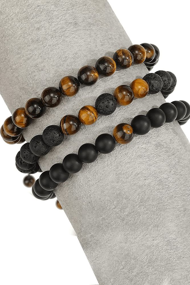 Sertifikalı Doğal Kaplan Gözü Lav Oniks Taşı Bileklik Seti