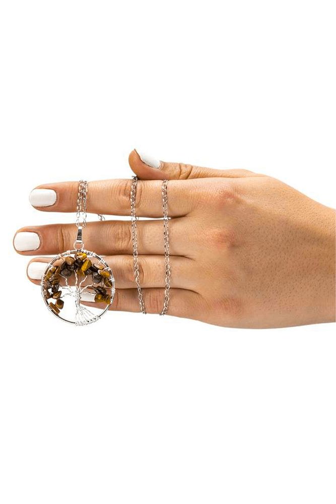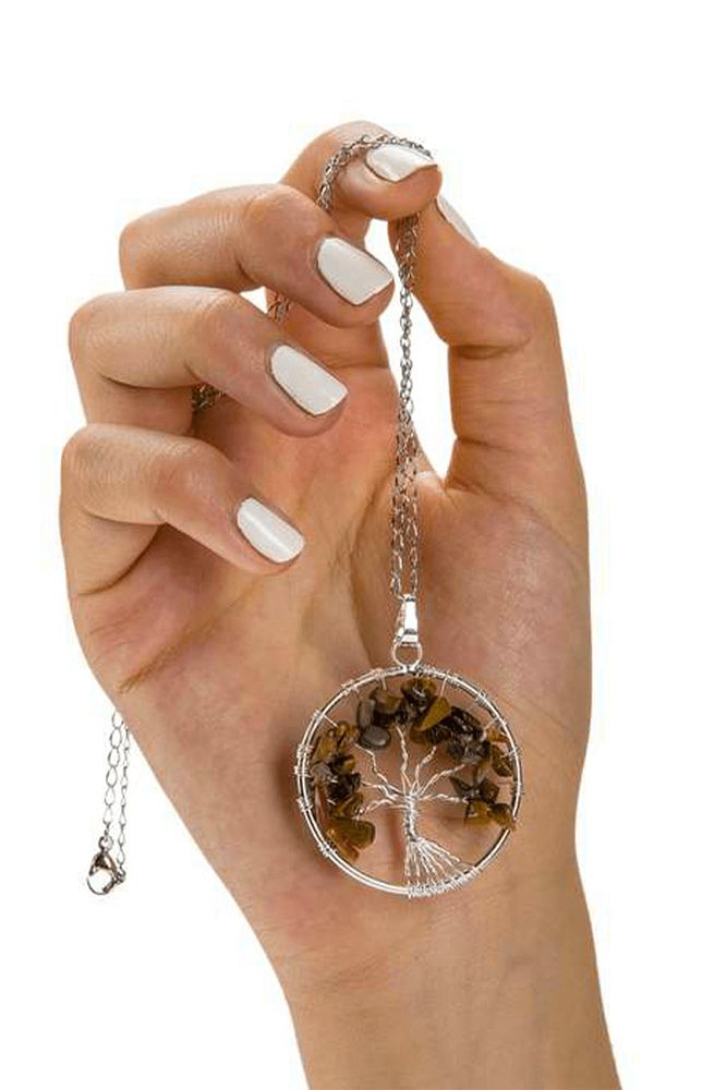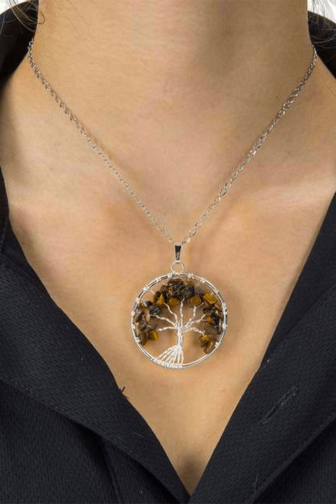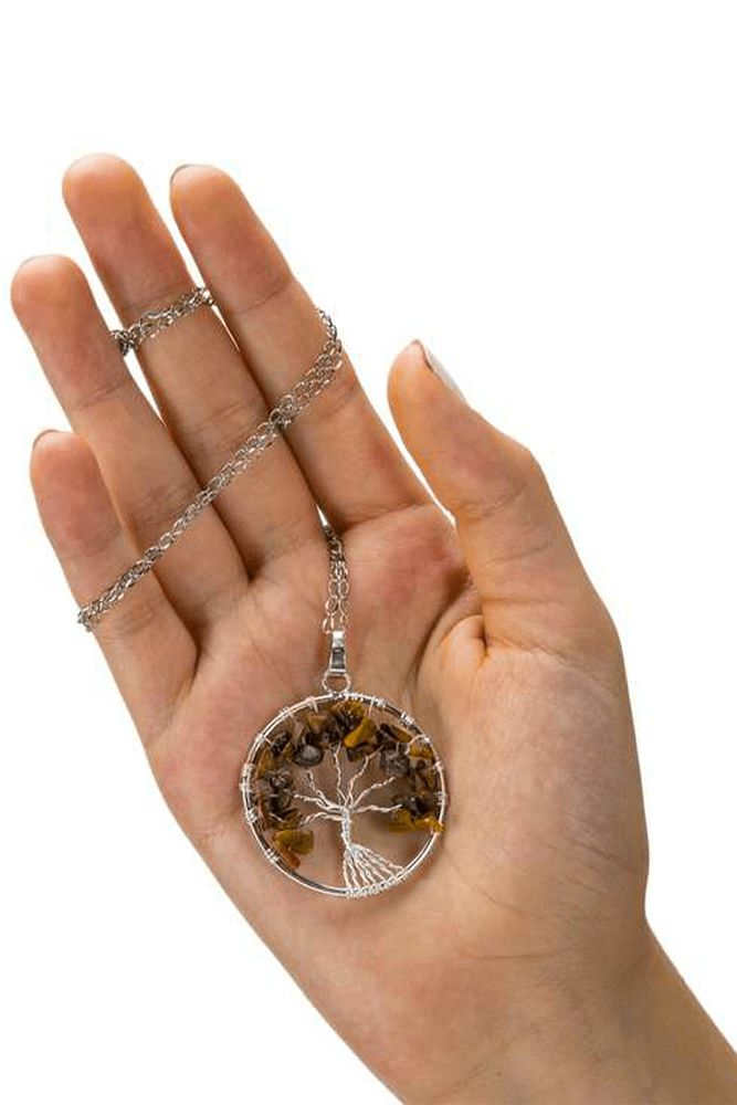 Sertifikalı Doğal Kaplan Gözü Taşı Hayat Ağacı Kolye