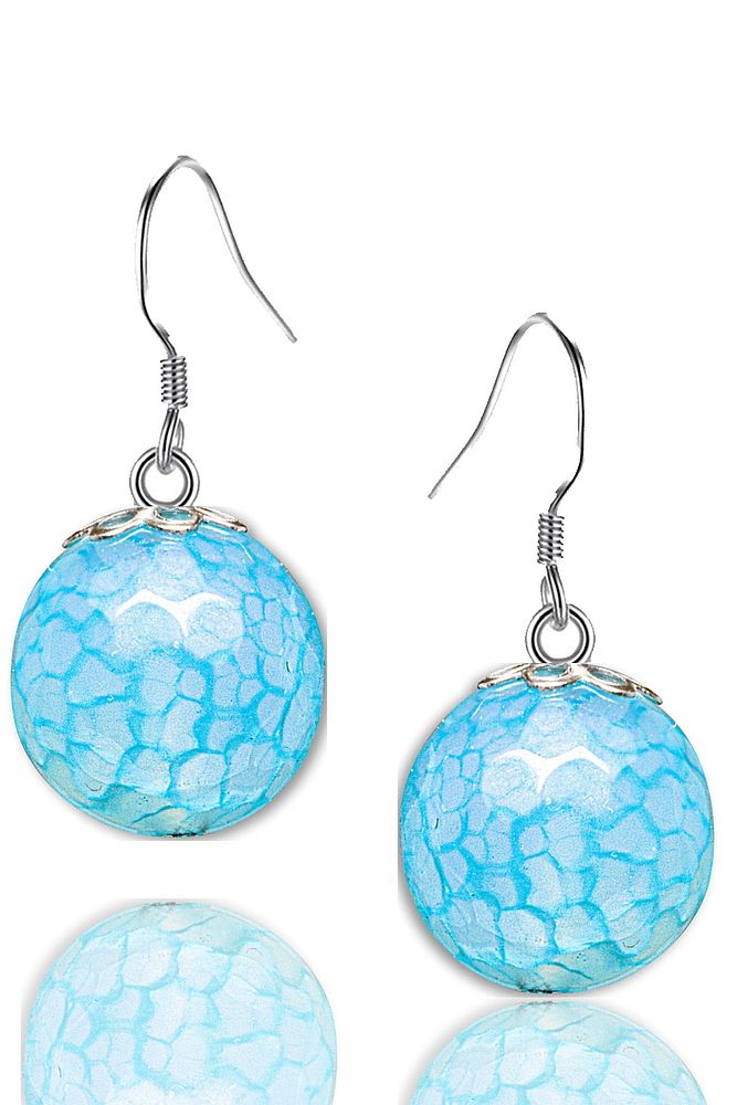 Sertifikalı Doğal Mavi Akik Taşı Gümüş Küpe