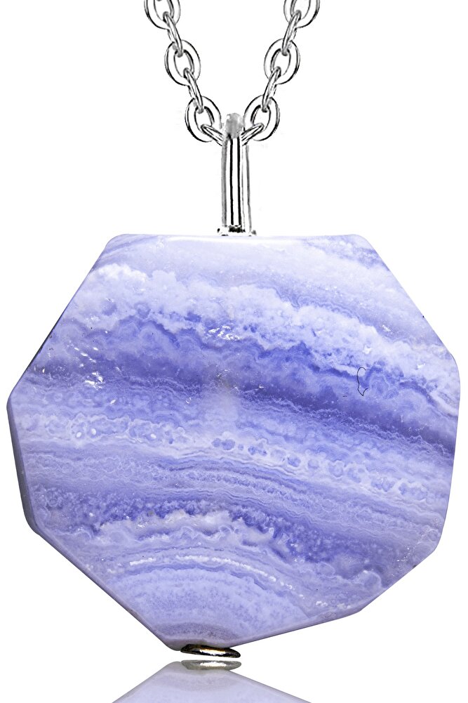 Sertifikalı Doğal Mavi Damarlı Kalsedon Taşı Kolye