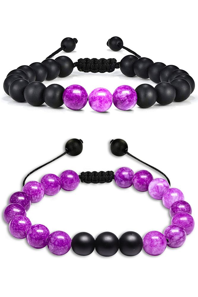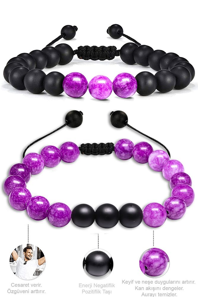 (Doğal Ametist Taşı ve Oniks Taşı Doğal Taş Bileklik 2'Li Set)