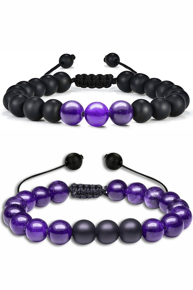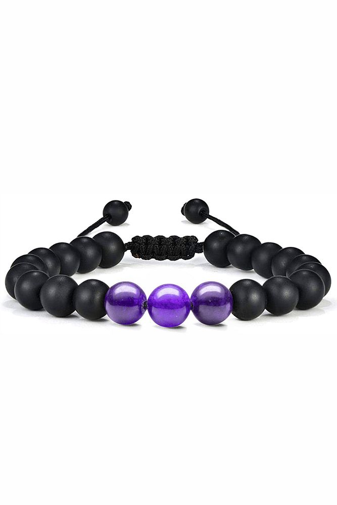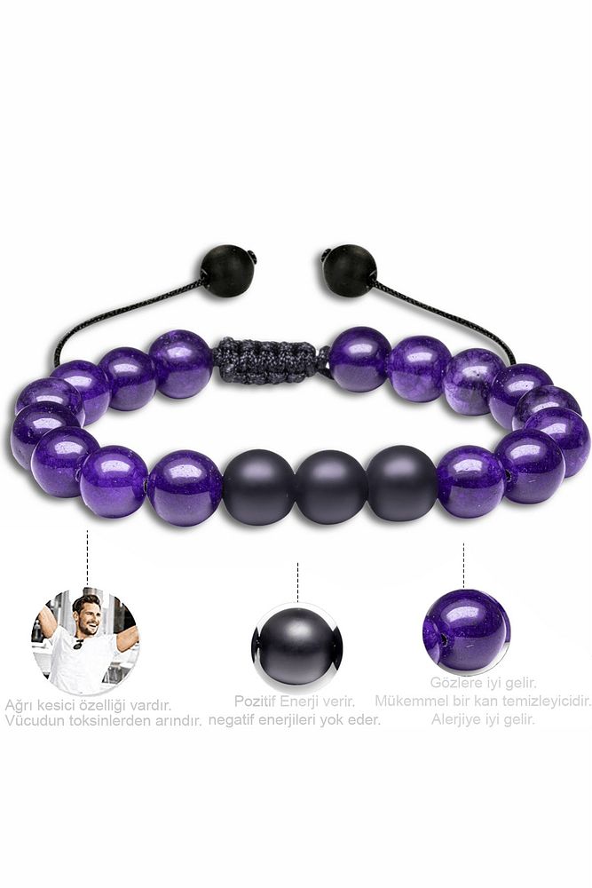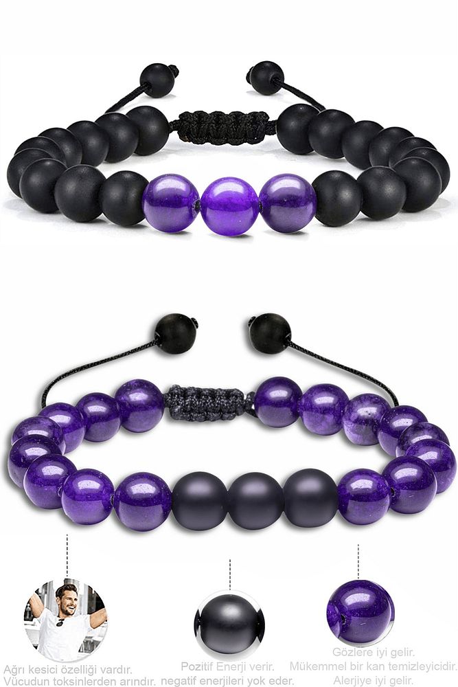 Sertifikalı Doğal Mor Akik Oniks Taşı Doğal Taş Bileklik Seti