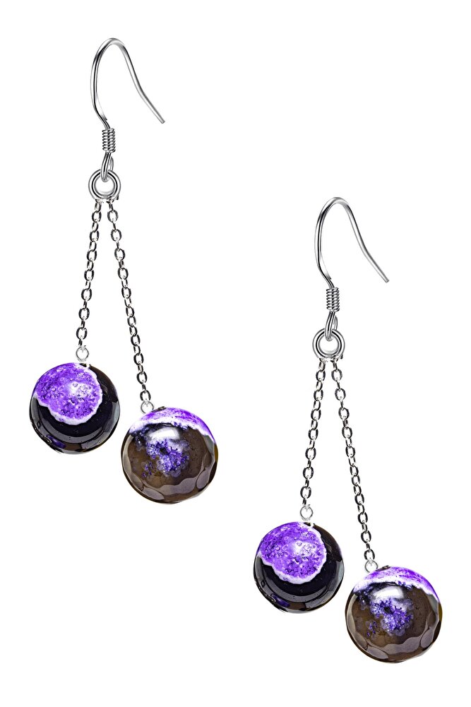 Sertifikalı Doğal Mor Tibet Akik Taşı Gümüş Küpe