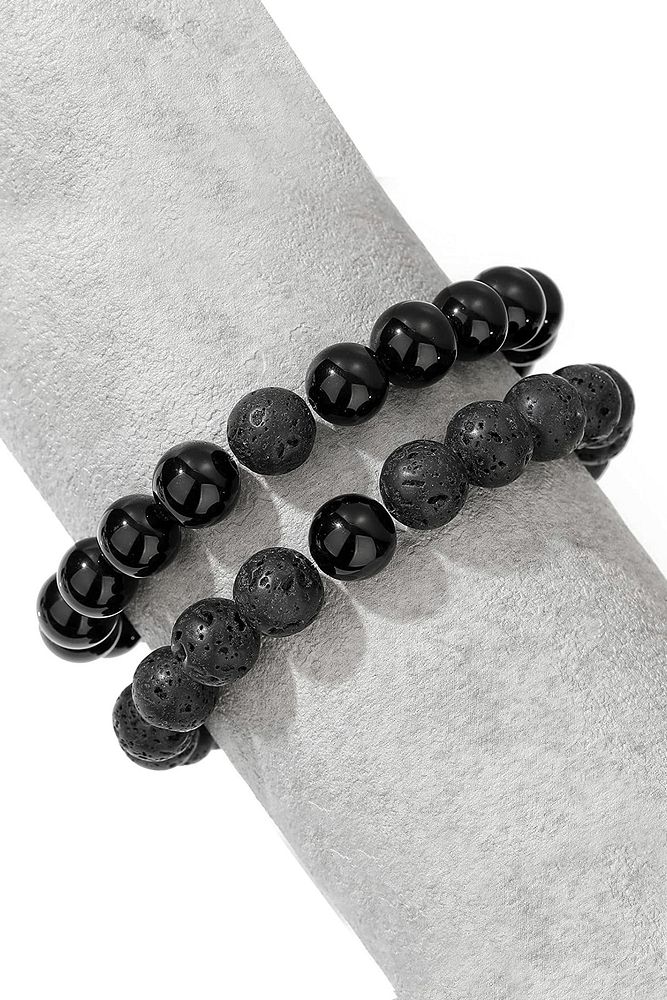 Sertifikalı Doğal Obsidyen Lav Taşı Doğal Taş Bileklik Seti