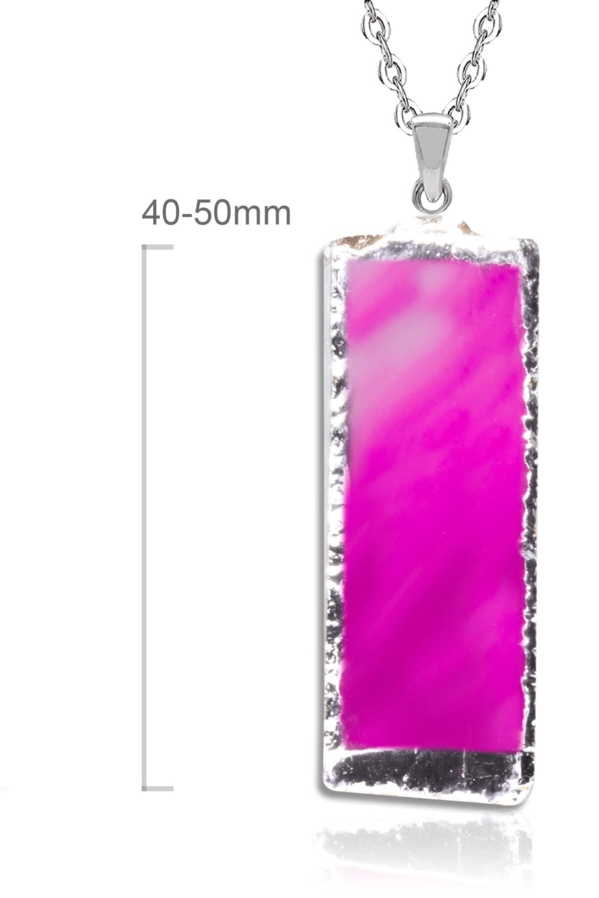 Sertifikalı Doğal Pembe Desenli Akik Taşı Kolye Doğal Pembe Renk 50 cm