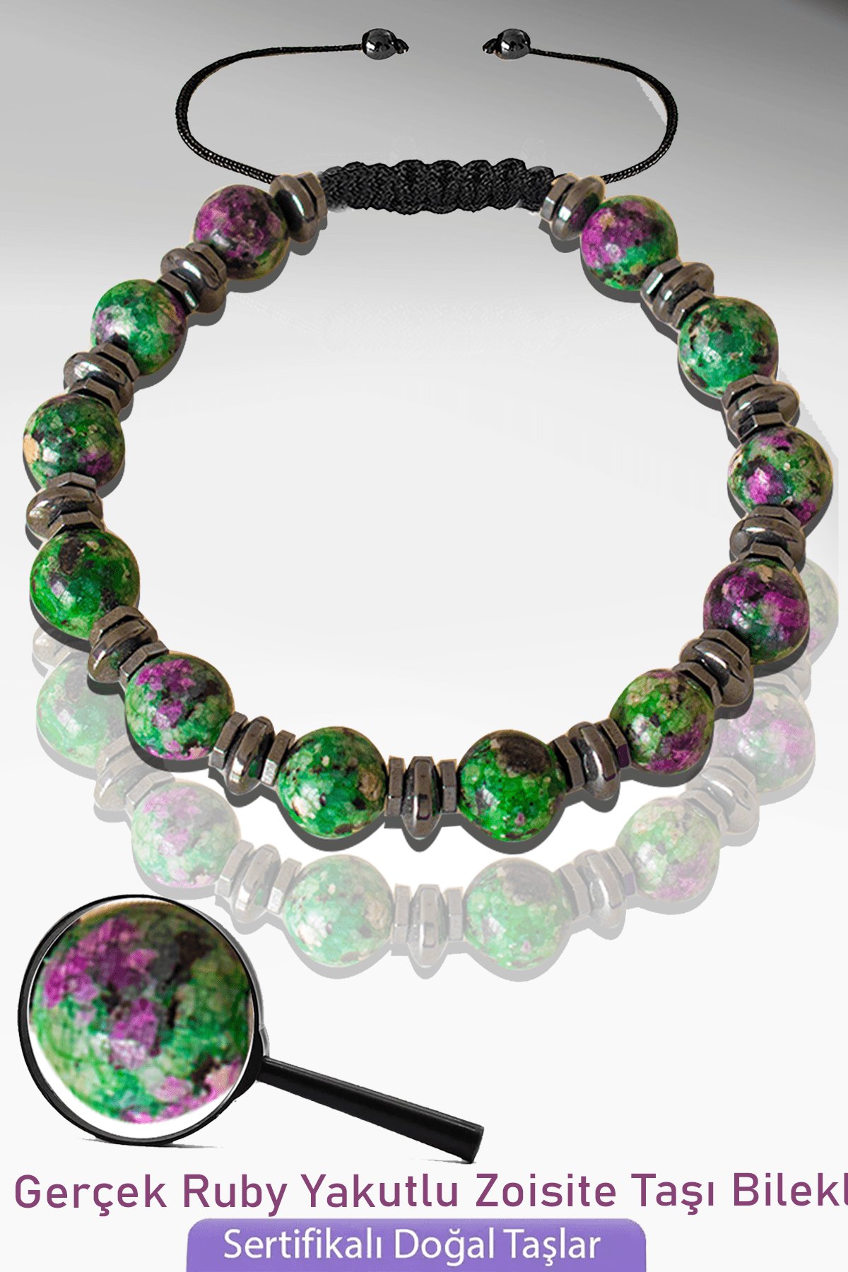 Sertifikalı Doğal Ruby Yakutlu Zoisite Taşı Bileklik - Ayarlamalı