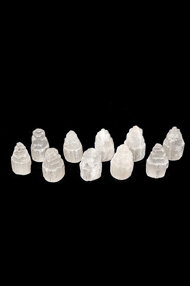 Selenit taşı doğal taş kule ortalama 6x2,5CM boyutlarındadır. Yaklaşık 30-35 Gram ağırlığındadır.