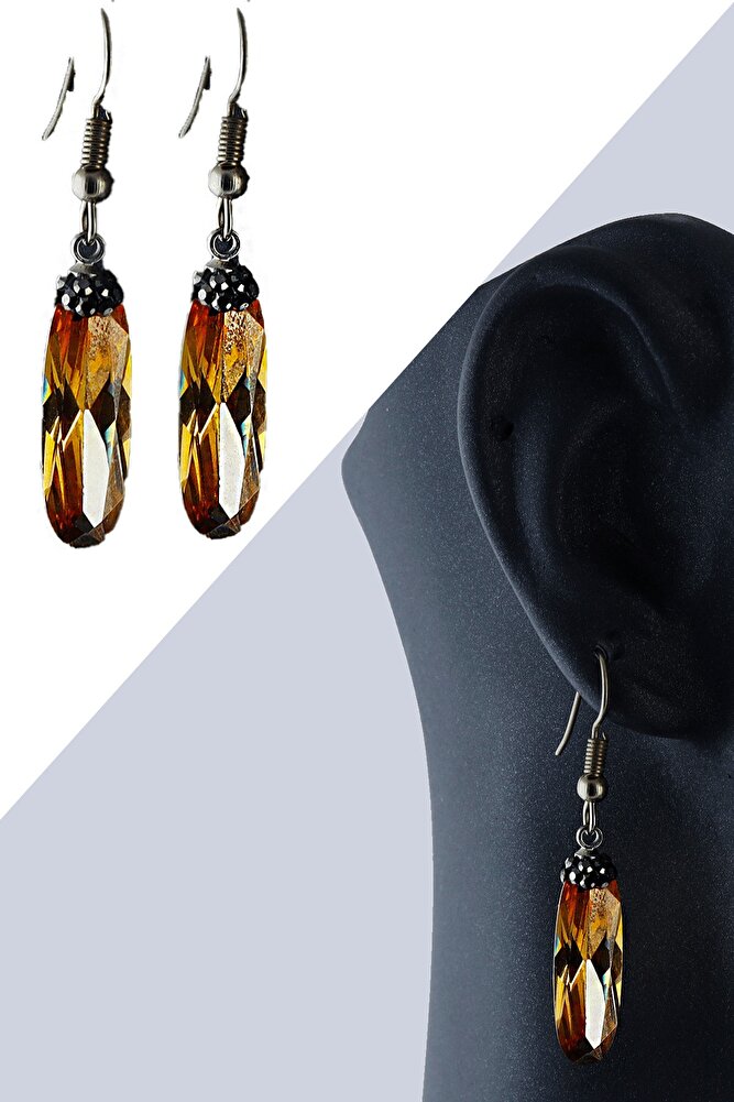 Sertifikalı Doğal Sitrin Taşlı Küpe