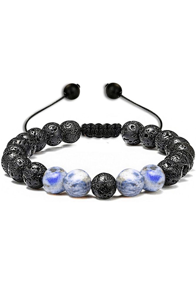 Sertifikalı Doğal Sodalit Volkanik Lav Taşı Doğal Taş Bileklik Seti