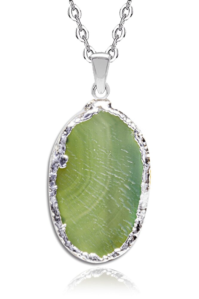 Sertifikalı Doğal Su Yeşili Akik Taşı Kolye