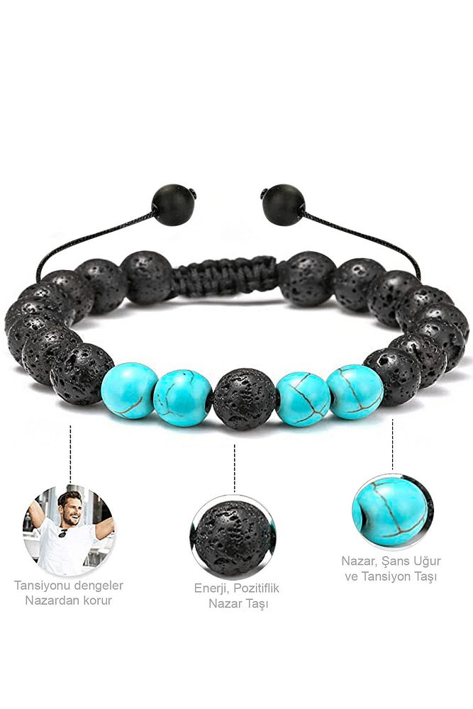 Sertifikalı Doğal Turkuaz Volkanik Lav Taşı Doğal Taş Bileklik Seti