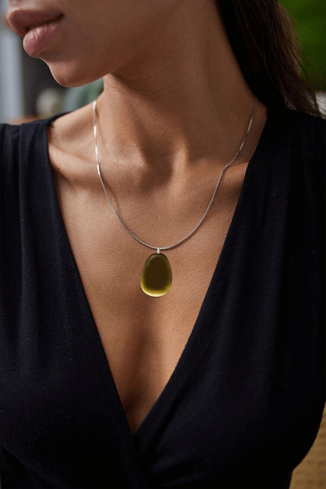 Sertifikalı Doğal Yeşil Akik Taşı Kolye