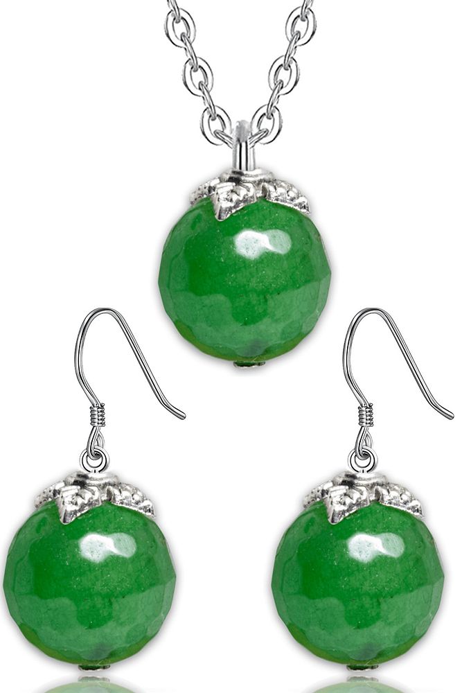 Sertifikalı Doğal Yeşil Aventurin Taşı Kolye Küpe Seti