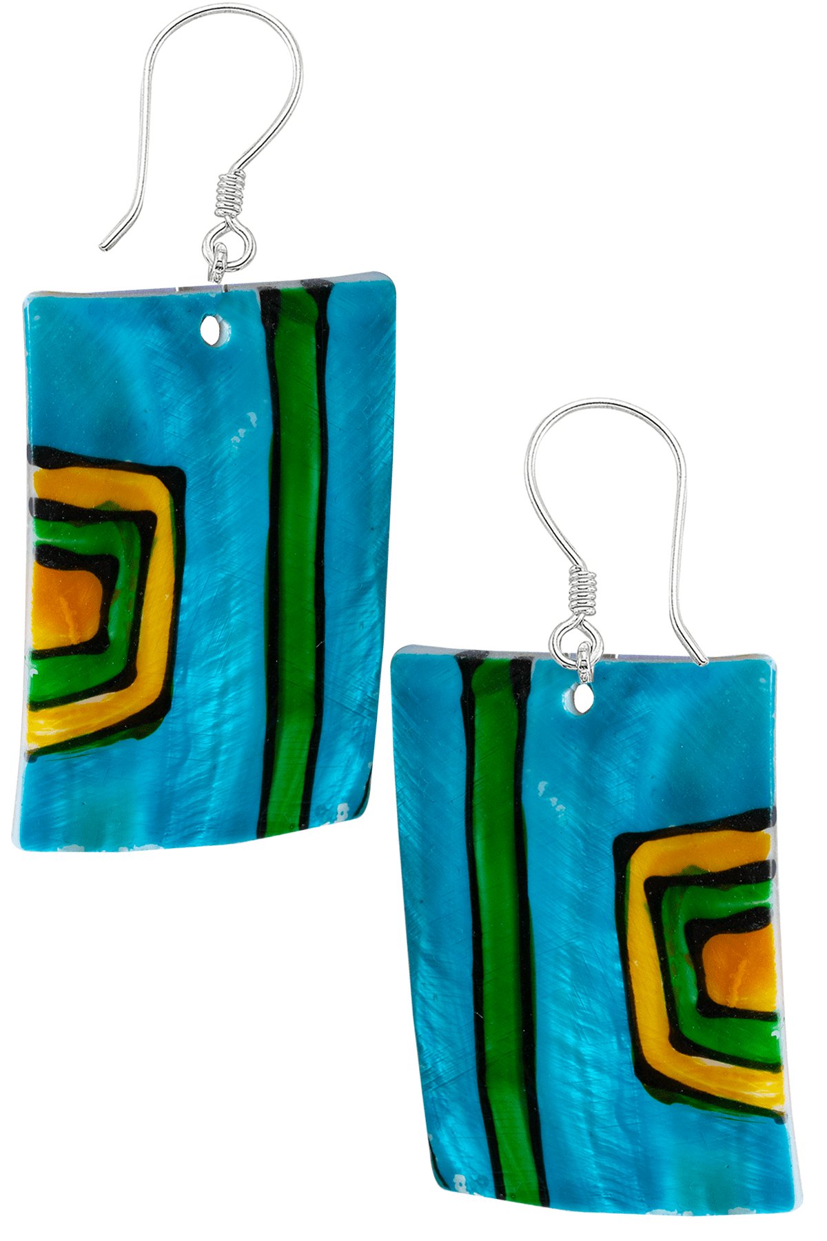 Sertifikalı El İşciliği Turuncu-Mavi Renkli Sedef Taşı Küpe
