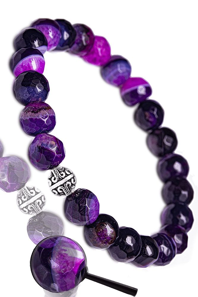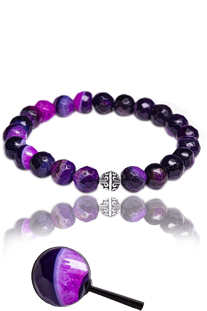 Sertifikalı Fasetli Damarlı Mor Akik Taşı Bileklik 8mm - 1.kalite