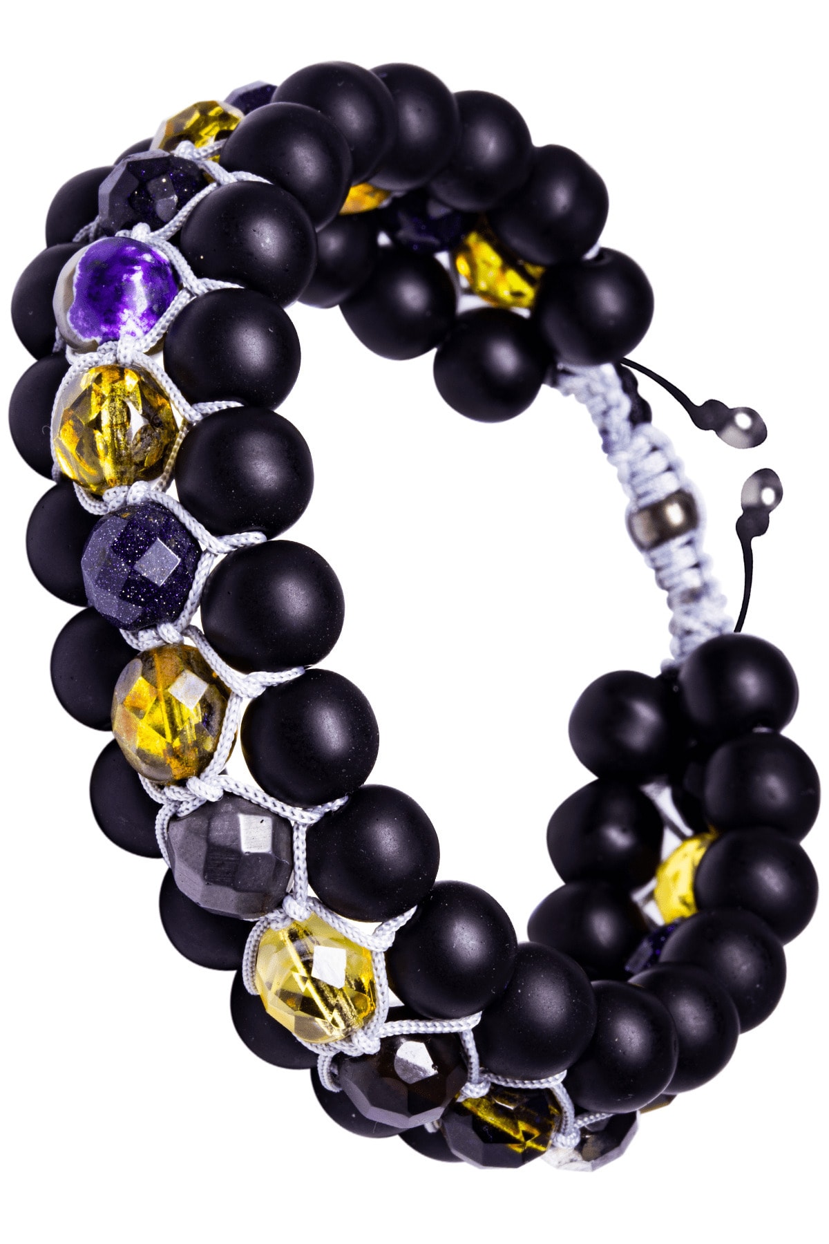 Sertifikalı Fasetli Doğal Jasper Kuvars Oniks Hematit Taşı 7 Çakra Bileklik Gri Renk