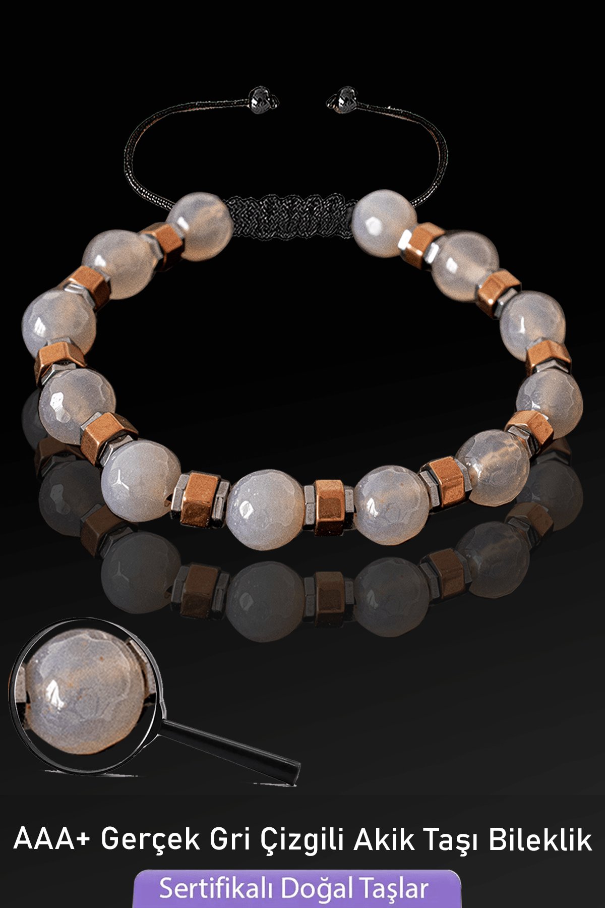 Sertifikalı Fasetli Gerçek Gri Akik Taşı Bileklik - Ayarlamalı