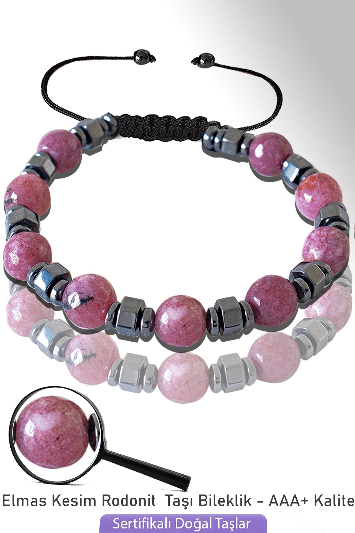 (Rodonit doğal taş bileklik - %100 doğal ve sertifikalı)