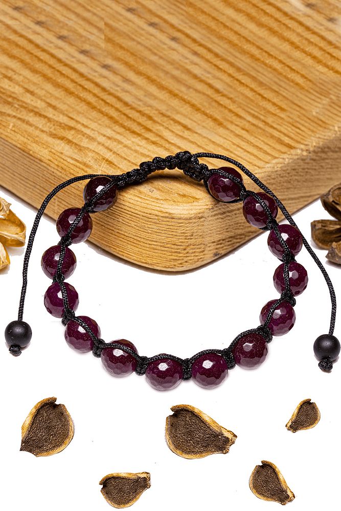 Sertifikalı Fasetli Lal Garnet Granat Taşı Bileklik - Makrome
