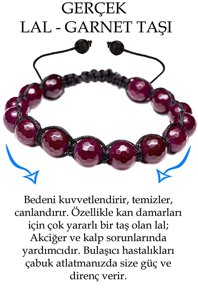 Doğal lal garnet taşı bileklik el işciliği sanatı olarak sizlere özel olarak hazırlanmıştır. Ücretsiz Kargo ve Taksit İmkanlarını sakın kaçırmayın. Sinir ve stresi alacak negatif enerjilerinizi ortadan kaldırır. Sizleri gevşetir. Ürünümüz her bileğe uygun olarak tasarlanmıştır.
