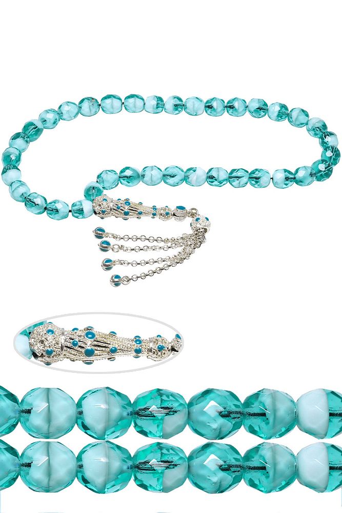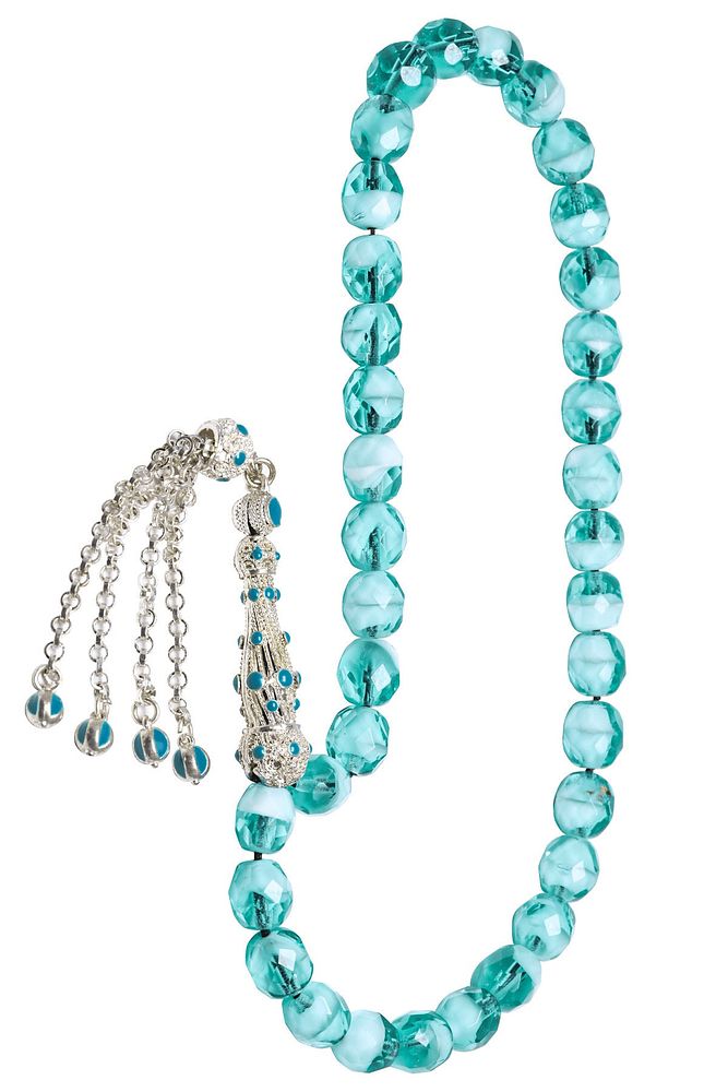 Ürün ya da Doğal Taş Açıklaması (Para - Sağlık - Pozitif Enerji Taşı) Kuvars tesbih modelleri, ''Tesbih Atölyesi'' Atölyelerinde ustalarımız tarafından kuru torna işciliği ile elde özen ile tane tane işlenmektedir. Ürünlerimiz el işciliği olduğu için sınırlı sayıda üretilmektedir. Tasarımlarımızda kullandığımız taşlar Dünya'nın en kaliteli doğal taşlarını kullanmaktayız. Tasarımlarımızda kullandığımız doğal taşların hiç biri birbirinin aynısı olmadığı için küçükte olsa farklılık gösterebilir. Doğal taşlar vücudunuza temas ettiği anda negatif enerjilerinizi alır ve pozitif enerjiler verir. Bu tasarımda; Mavi şeffaf renkli fasetli kuvars taşı ve Beyaz altın kaplama mavi mineli telkari imame ve püskül seti kullanılmıştır. Çift kaplama atıldığı için renk atmaz ve kararmaz bir yapıya sahiptir. Yedek ip ile gönderim sağlanır. Üretildiği Taş; Kuvars; Ana Renk; Doğal Renk; Ağırlık; 20-30 gr; Tane Şekli; 8x8 mm; Tane Ölçüsü; Küre Kesim; Toplam Uzunluk; 20-30cm; İmame ve Püskül Maddesi; Düşük Ayar Gümüş;