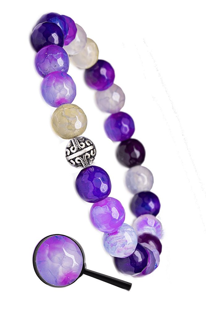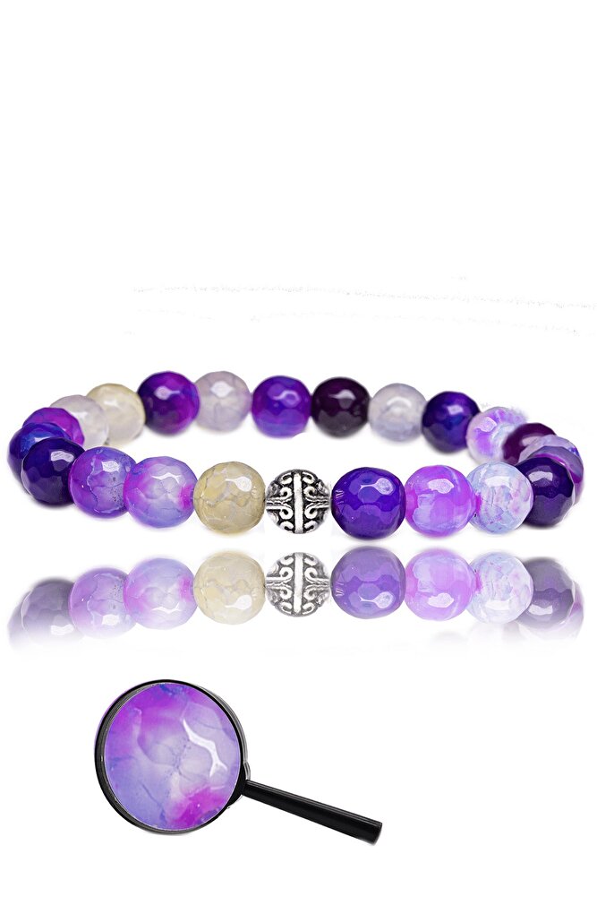 Sertifikalı Fasetli Mor - Şeffaf Akik Taşı Bileklik - Gümüş Aparatlı