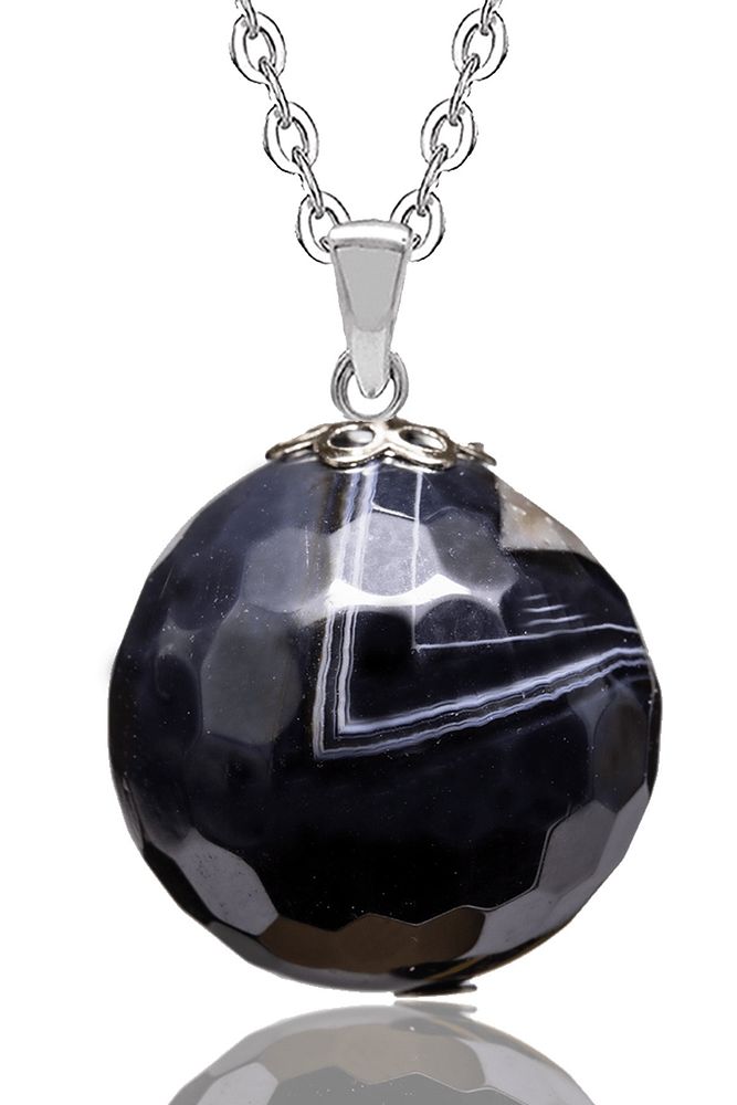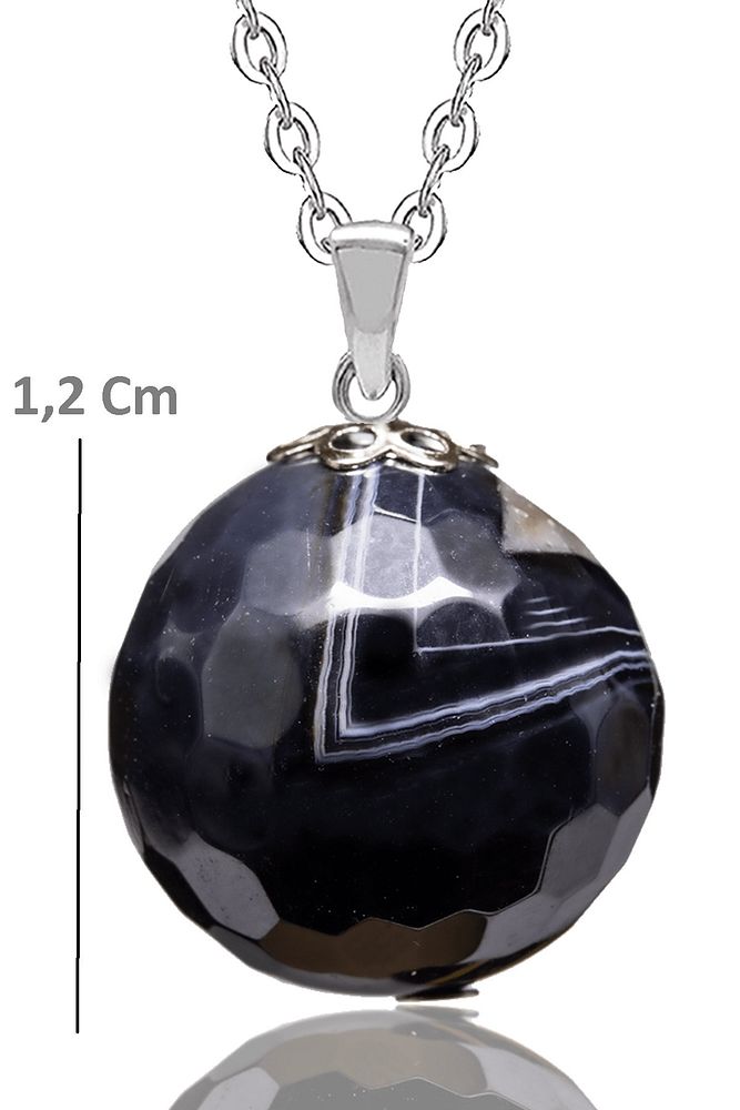 Sertifikalı Fasetli Siyah Akik Doğal Taş Kolye