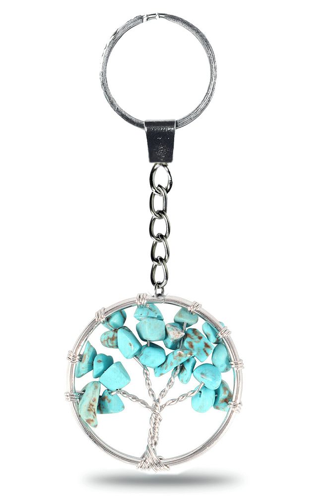 Sertifikalı Firuze Turkuaz Taşı Hayat Ağacı Doğal Taş Anahtarlık