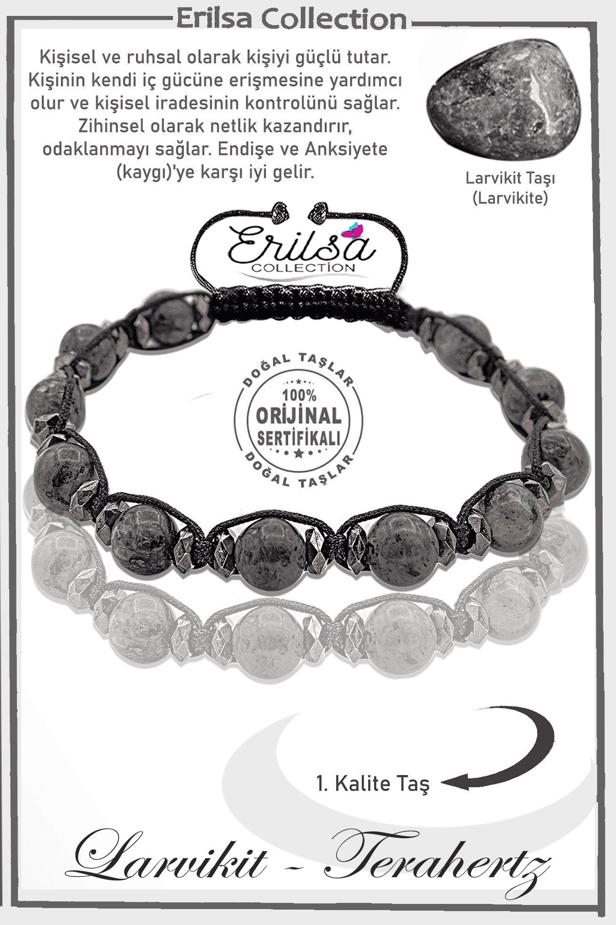 Sertifikalı Gerçek AAA+ Terahertz - Larvikit Taşı Bileklik- Ayarlamalı