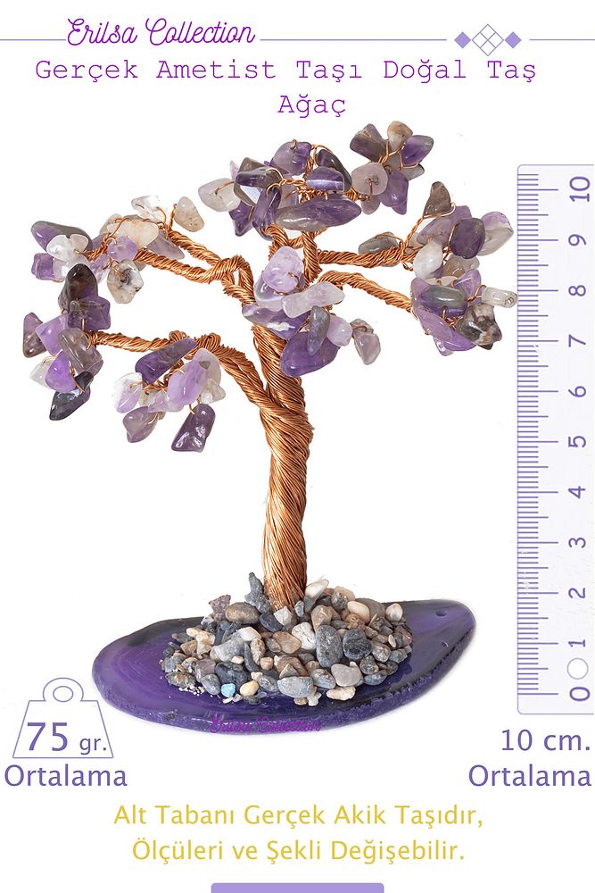 Sertifikalı Gerçek Ametist Doğal Taşı Ağaç - Akik Plakalı