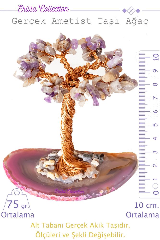 Sertifikalı Gerçek Brezilya Ametist Taşı Ağaç - Akik Plakalı