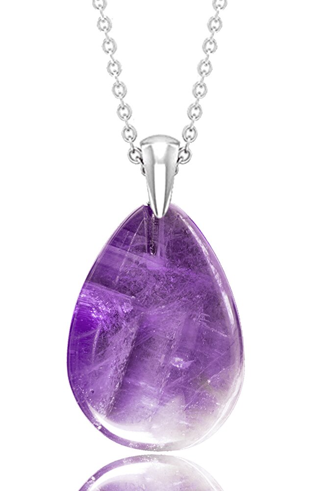 Sertifikalı Gerçek Damla Model Ametist Taşı Kolye - 20mm (GÜMÜŞ APARATLI)
