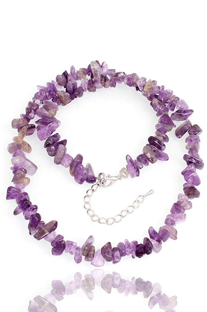 Sertifikalı Gerçek Doğal Ametist Kırık Taşlı Kolye