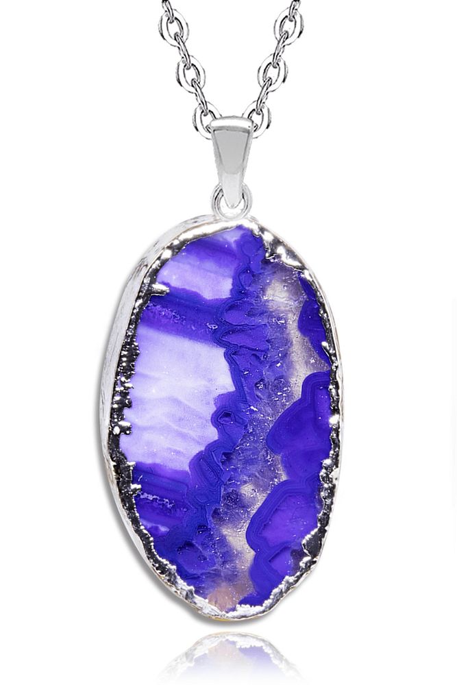 Sertifikalı Gerçek Doğal Mavi Desenli Akik Taşı Kolye