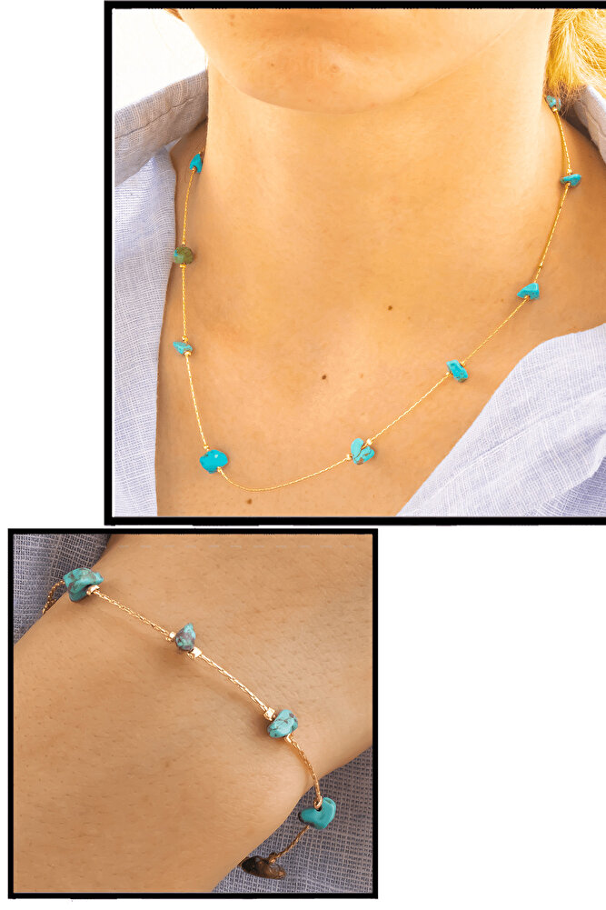 Sertifikalı Gerçek Firuze (Turkuaz) Taşlı Doğal Taş Kolye Bileklik Seti