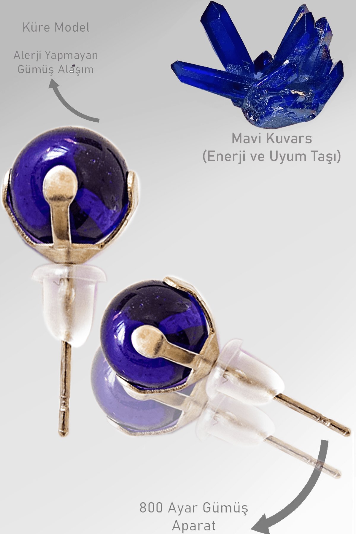 Bu tasarımımızda; %100 Doğal Mavi Kuvars Taşı kullanılmıştır.