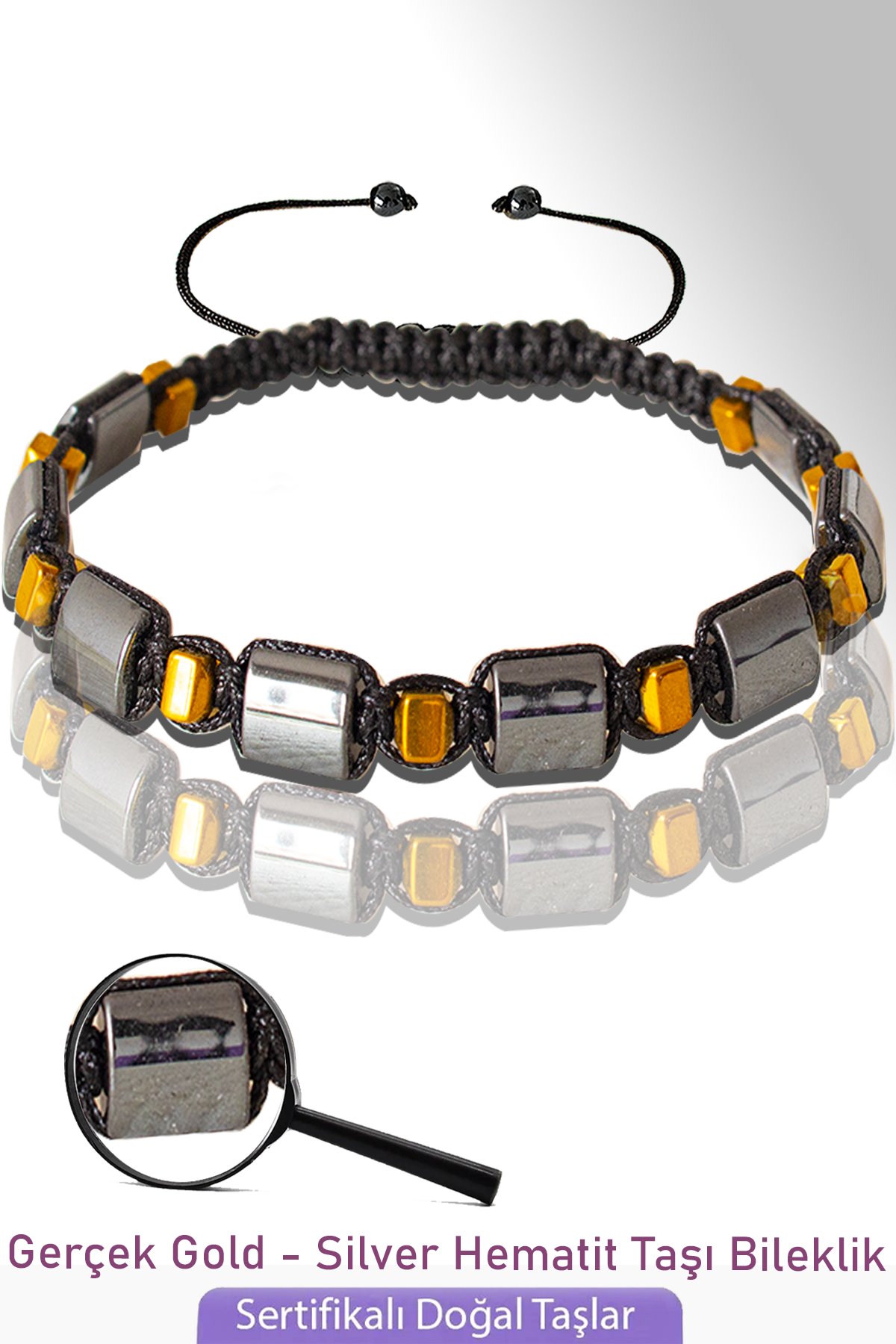 Sertifikalı Gerçek Gold - Silver Hematit Taşı Bileklik - Ayarlamalı