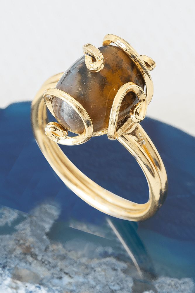 Sertifikalı Gerçek Gold Rokoko Model Pietersite Taşı Yüzük - Ayarlamalı