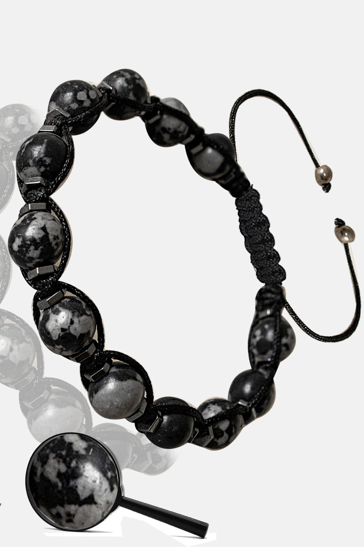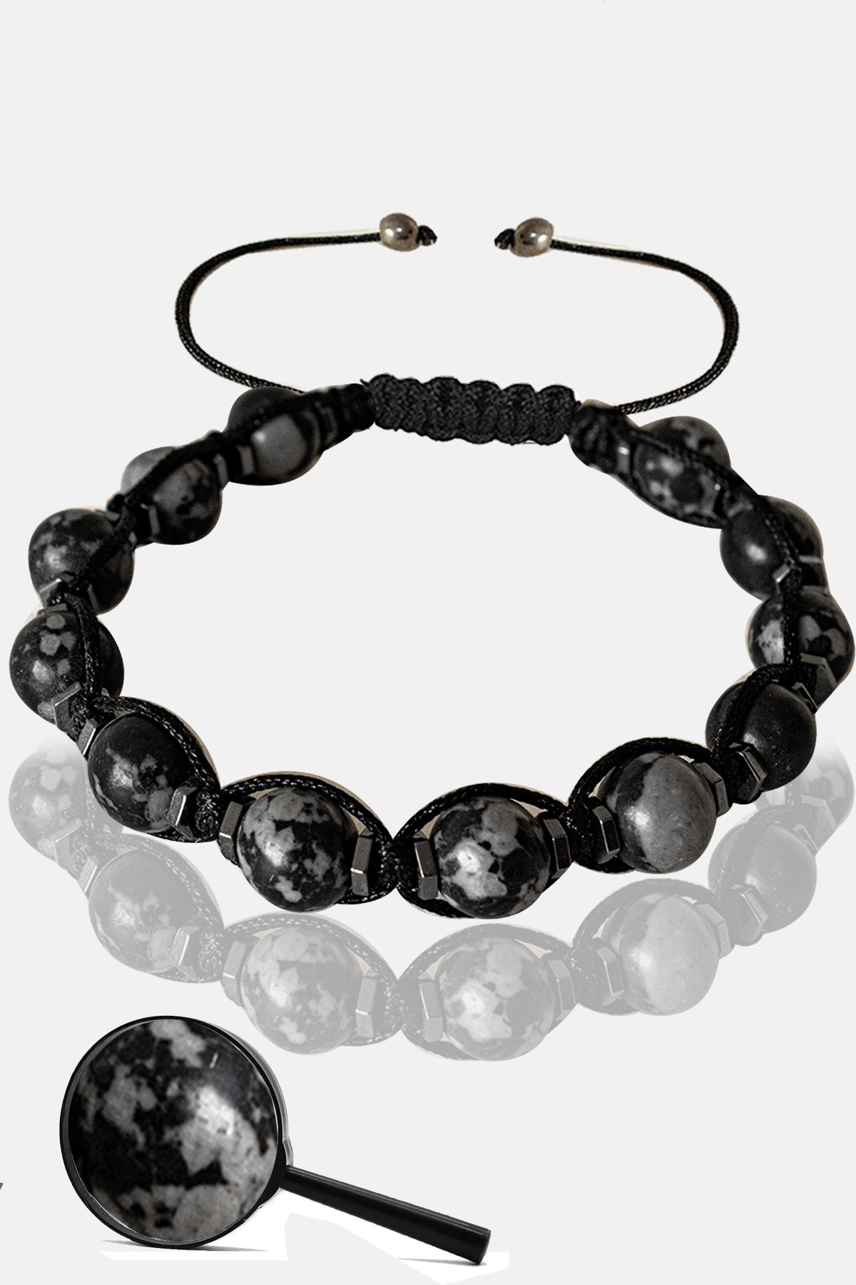 Sertifikalı Gerçek Hematit - Karlı Obsidyen Taşı Bileklik - Ayarlamalı